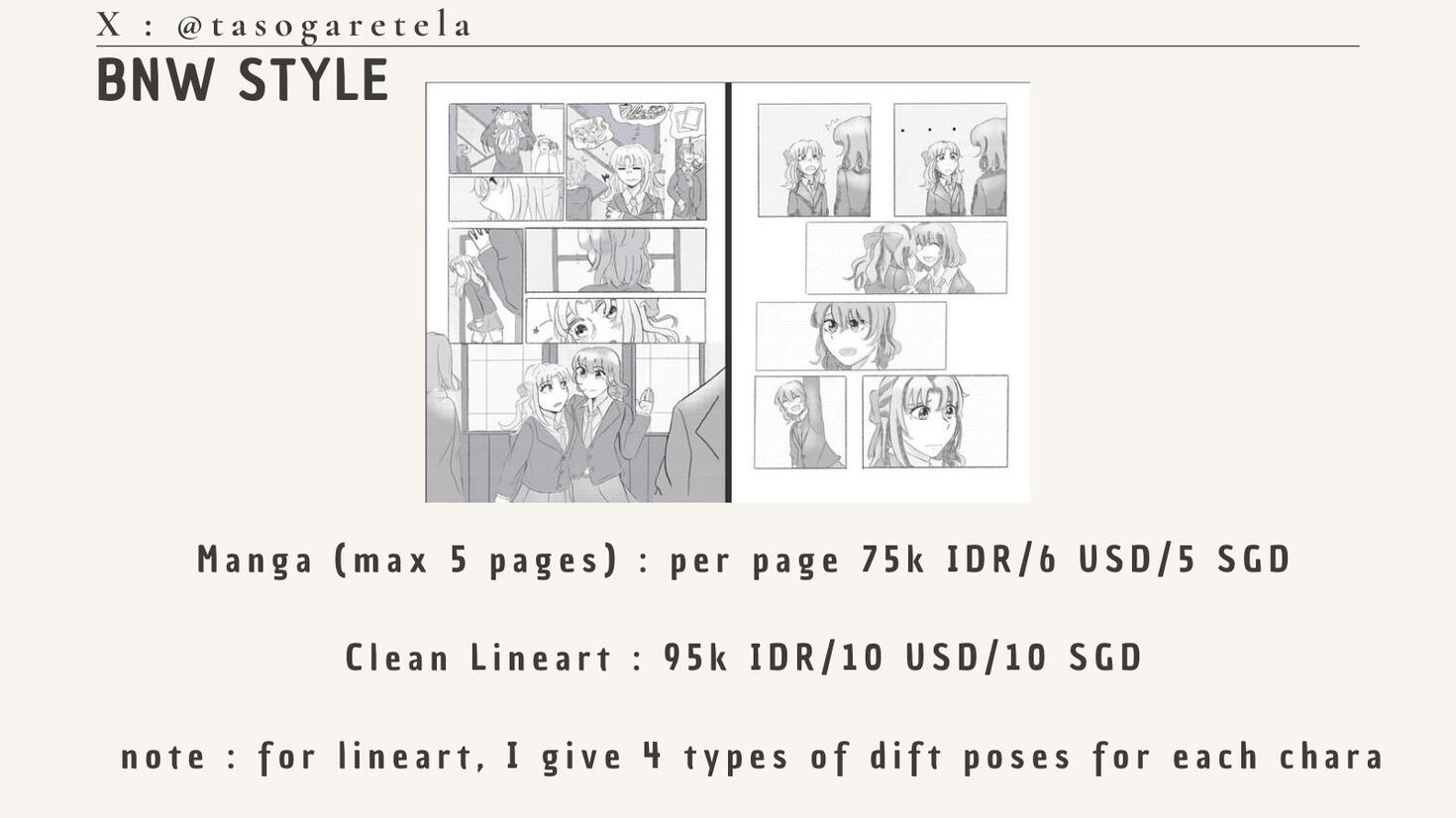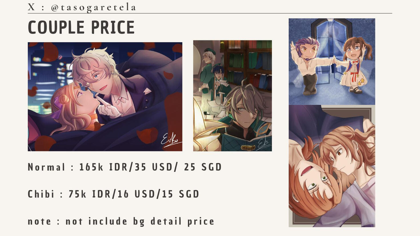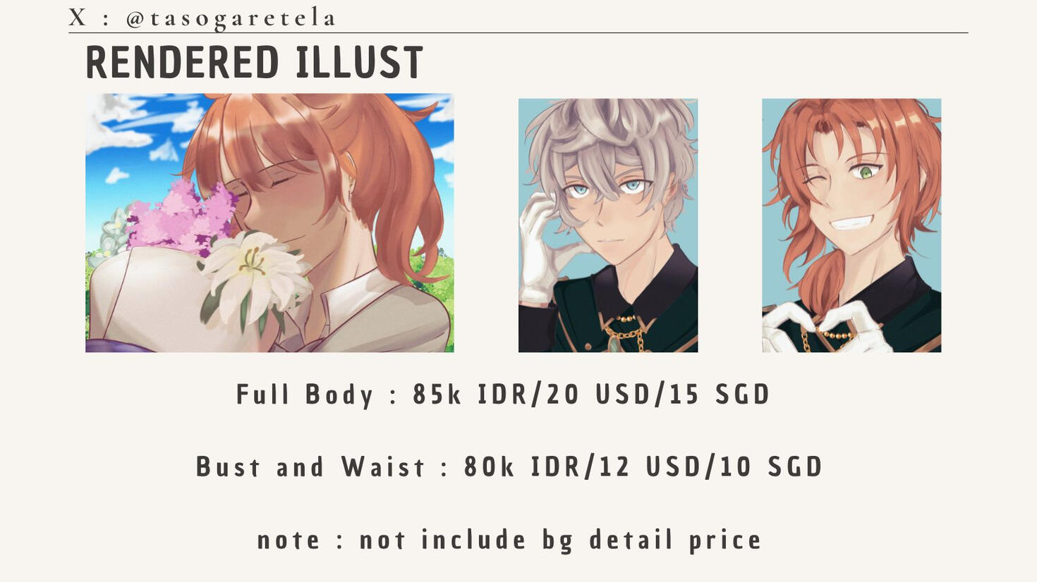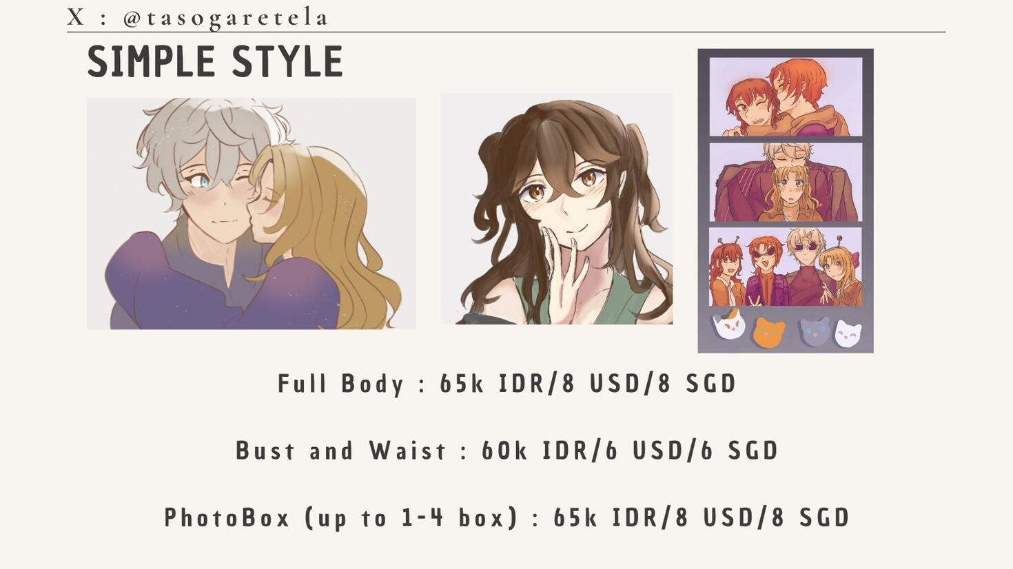 | Bust n Waist Up : 70k IDR/7 SGD/6 USD |